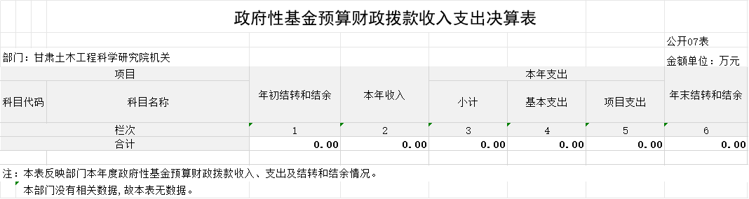 2023年度政府性基金預(yù)算財政撥款年初結(jié)轉(zhuǎn)和結(jié)余0.00萬元,本年收入0.00萬元,本年支出 0.00萬元,年末結(jié)轉(zhuǎn)和結(jié)余 0.00萬元,